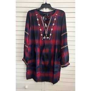 NWT English Factory Dark Navy Plaid Dress Size Small