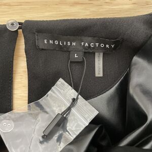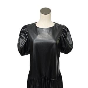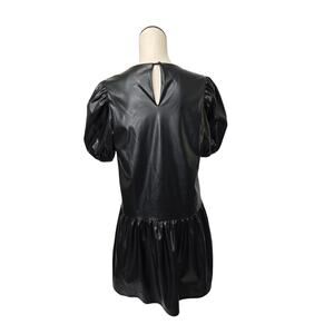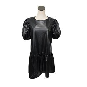 NWT English Factory Dress Women Large Black Puff Sleeve Faux Leather Mini Shift