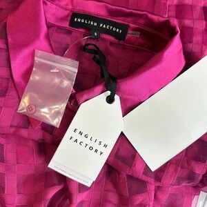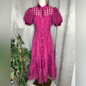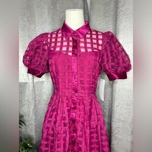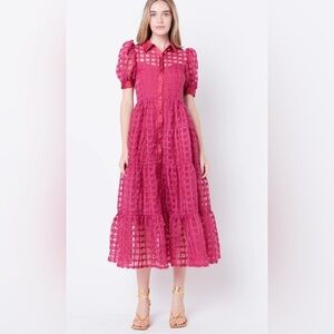 NWT English Factory Gridded Organza Tiered Collared Maxi Dress in Bordeaux S