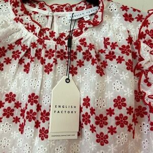 *NWT* English Factory Ruffle Floral Eyelet Blouse Top White Red