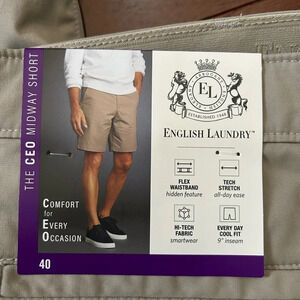 NWT English Laundry The CEO Midway Shorts flex waist sz40 color tan tech stretch