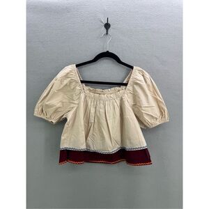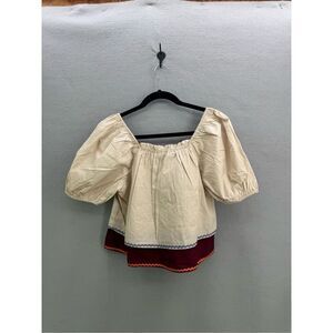 NWT English Factory Womens Pink Red RicRac Trim Layered Poplin Duffy Top Large