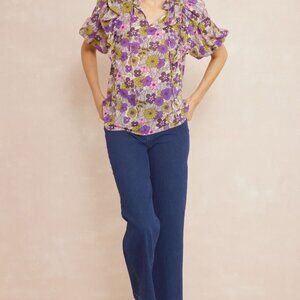 NWT Entro Floral print v-neck puff sleeve top -Size XL