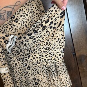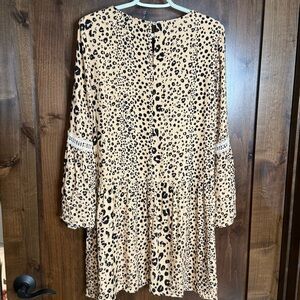 NWT Entro Leopard Print Mini Dress with bell sleeves Womens Size L 100% Rayon