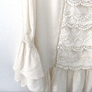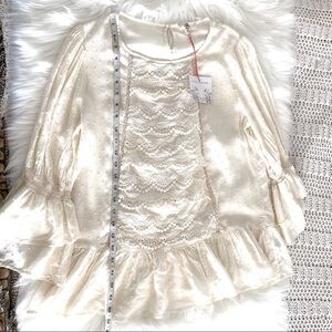 ENTRO 3/4 Sleeves Lace Overlay Boho Tunic Top in New Condition! Size Medium.