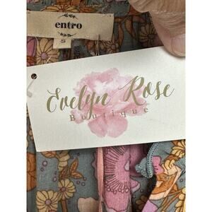 NWT Entro Women's Sz S Runs Big V-neck ruffled Collar floral 3/4 sleeves Boho