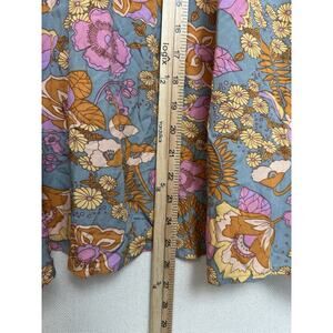 The NWT Entro Women's Size Small Boho Top features a V-neck with ruffled collar and floral pattern, making it perfect for various occasions such as travel, parties, casual outings, workwear, and business meetings. Made from lightweight rayon fabric in blue and pink hues, this relaxed fit tunic blouse has 3/4 balloon sleeves and is designed with a pullover closure. Ideal for the summer, fall, and spring seasons, this bohemian-inspired top adds a touch of nature, art, and colorful flair to any outfit.