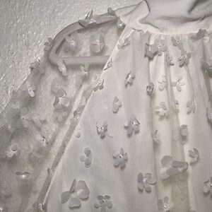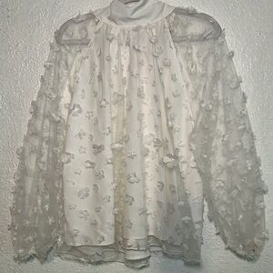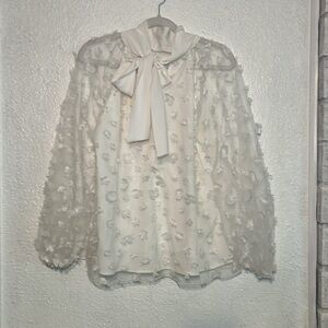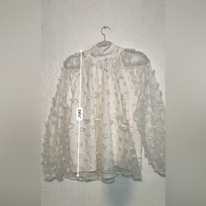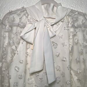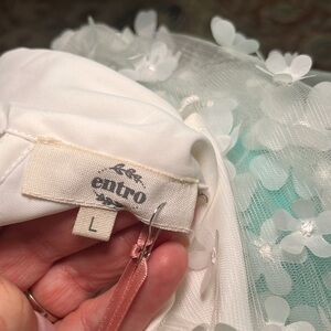 NWT Entro white sheer floral sleeved top with back tie size large. Has tank sewn in underneath.