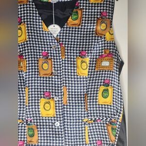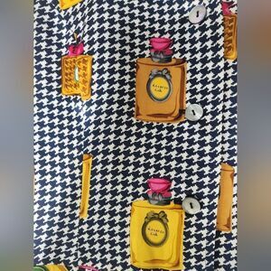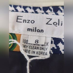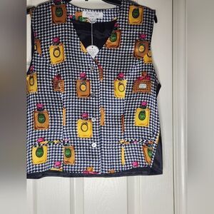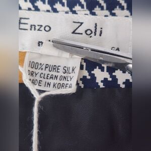 NWT Enzo Zoli Milan 100% PURESILK Navy/ White Parfum Print ButtonsUp Women Vest
