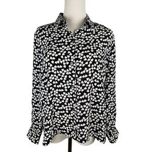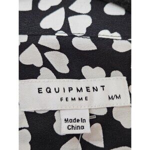 NWT! Equipment Femme Essential Heart Print Silk Shirt Medium B & W Button Down