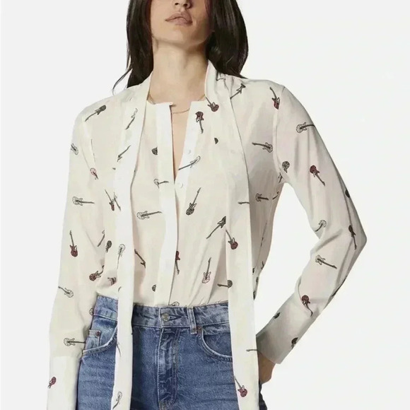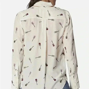 NWT Equipment Luis Silk Blouse Top Nature White Multi Guitar Print M
