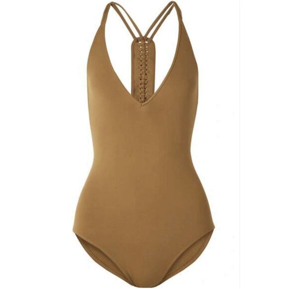 New With Tags Eres Close Up Mirella Braid Trimmed Swimsuit Shammy Tan Brown France Travel Resortwear Luxury Vacation