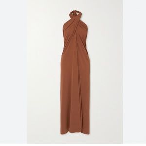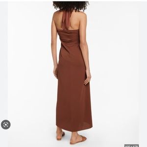 Never worn and brand new with tags! Sold out everywhere this is a beautiful dress to dress up or down and style as you wish. There are multiple ways to tie the halter straps for your desired effect. Great for a beach trip or add some gold jewelry and pair of heels for a more special look