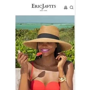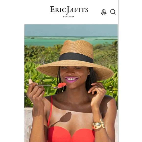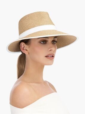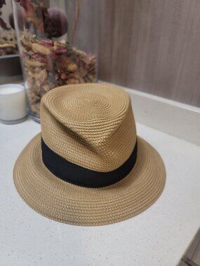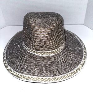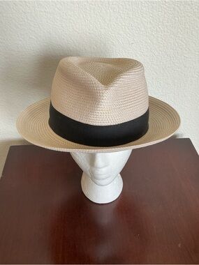 NWT Eric Javits Daphne Fedora Hat One Size Natural/Black