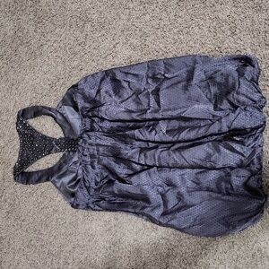 Brand new with tags Erica Davies dress. Silky feeling material with spotted/polka dot pattern. Embellished with metal stud detailing on along front neckline continuing to back racerback cut. Lined with side zipper. Bubble style allows you to adjust length. Women's size 6. 100% viscose. Smoke free and pet free home. Please check out my other items...I'd love to make a discounted bundle for you. Thank you!!