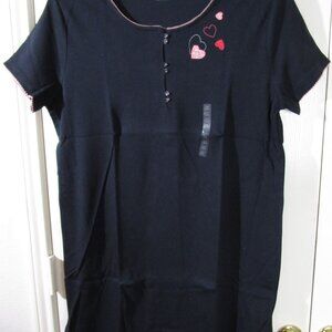 NWT Erika Taylor SS Black with Hearts Knee Length Nightgown, Medium