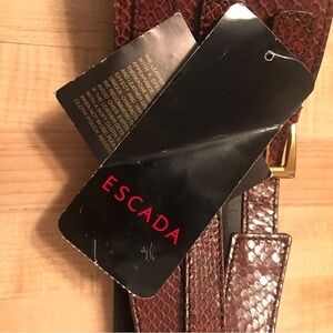 NWT Escada Leather Wide Waist Woman’s Belt Brown Snake Gold Hardware Italy