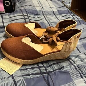 NWT Espadrille Canvas Wedges with Ankle Laces size 10