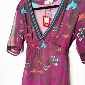 NWT Esprit Y2K Asian Kimono Sheer Empire Waist Tie Long Top Vintage Deadstock