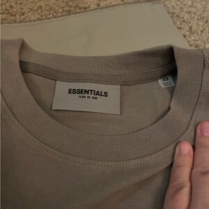 Essentials charcoal t-shirt with subtle logo design. Perfect for casual wear.