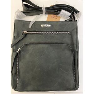 NWT Estalon charcoal gray distressed leather crossbody bag