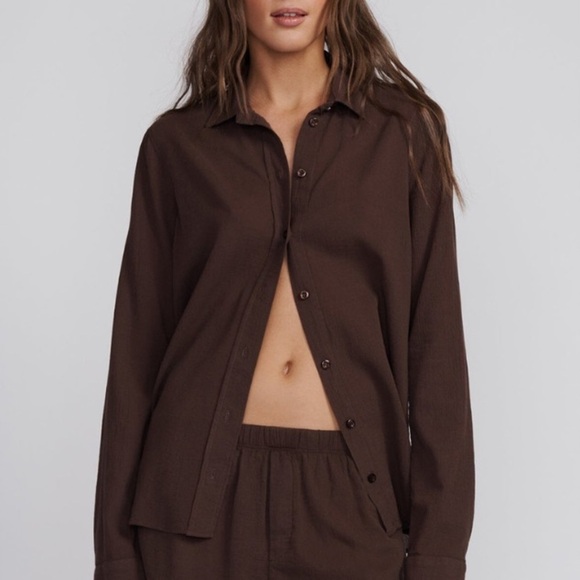 NWT Eterne Jolene Cotton Button Down Up Long Sleeve Shirt Top Brown Chocolate