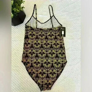 NWT Ethika Bodysuit Black and Yellow Skulls Size Large