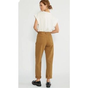 This straightleg pant is both stylish and comfortable. Did we mention the fit is perfection?Channeling a 90s vibe, the Bryce Pinch Waist Boyfriend Pant by ETICA offers a versatile neutral tone in Tapenade, perfect for a chill yet stylish look. Designed with a relaxed fit, these pants sit perfectly at a high rise with a 12.5" waist rise and 29" inseam, excellent for a roll or a slight stack. Crafted from a blend of 75% Cotton and 25% Refibra Tencel, it provides supreme comfort throughout the day. Closure - Zip closure. Care instructions recommend machine wash cold with like colors, line dry, and use a warm iron if needed.