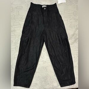 NWT Etica Lewis High Waist Pleated Ankle Cargo Jeans Onyx Black Denim