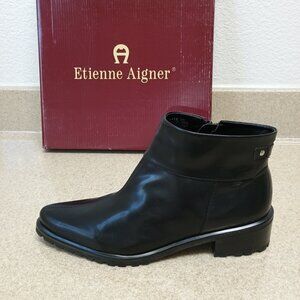 NWT Etienne Aigner Luxe All Leather Boots 9M Black Zip Brazil Ankle Pointed Toe