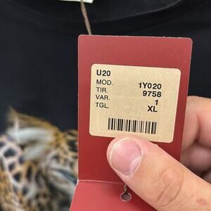 NWT Etro Black Short Sleeve Tee with Leopard hand painting Size XL