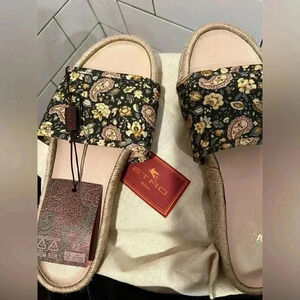 NWT Etro Canvas Floral Paisley Print Espadrilles Slides Black EU 38 US 7 1/2