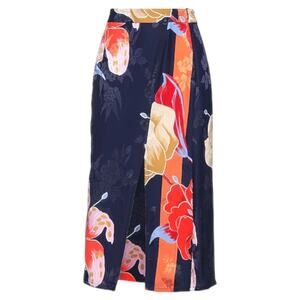 NWT Etro Silk Jaquard Navy Floral Midi Skirt Size 44 IT or 8 US