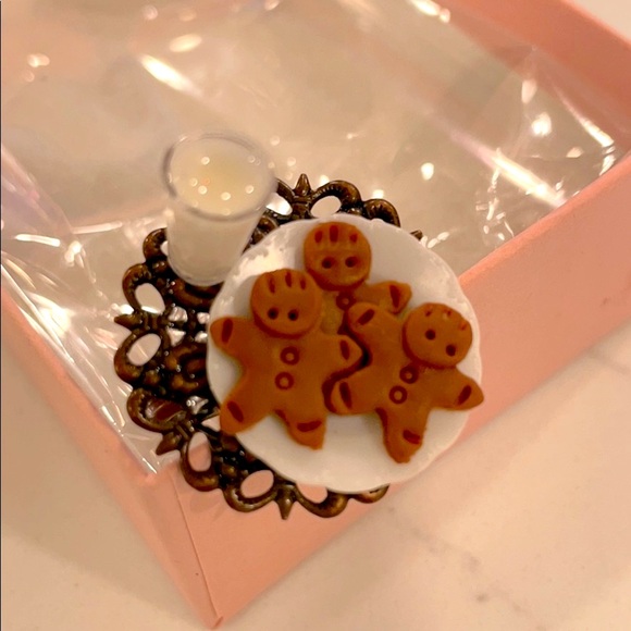NWT Etsy Gingerbread Cookies and Milk Simulated Food Ring. Purchased on Etsy. Adjustable Band. Perfect eccentric holiday statement piece. Never used. Approximately 1” plate size. Handmade pieces are precious. Great Holiday Gift 🎁