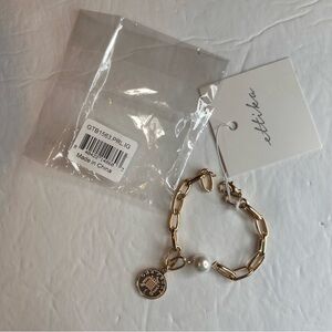 NWT Ettika One Penny Single One Pearl Charm Gold Bracelet 18K Gold