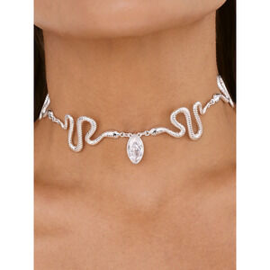 NWT Ettika Serpentina Choker Necklace Clear Crystal with Silver Plating