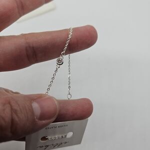 Silver plated chain bracelet with a single faceted cubic zirconia crystal. Brand new on card with drawstring bag. Approximately 6" with 1" extender