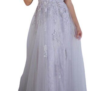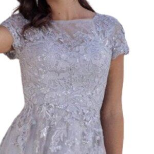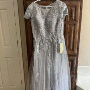 NWT Eureka Fashion EK104 Lace Appliques Mother of the Bride Dress Silver size XL