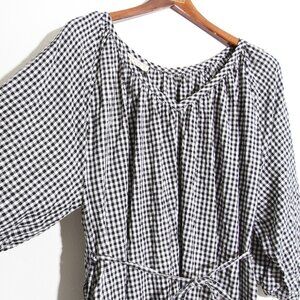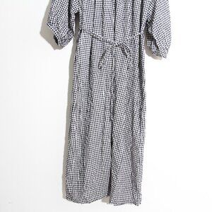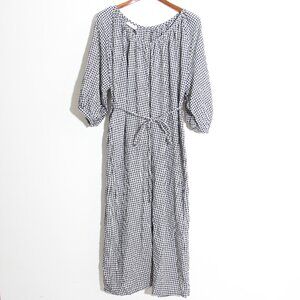 NWT Eva Cassis Athena Midi Dress 100% Italian Linen Gingham Check Plaid One Size