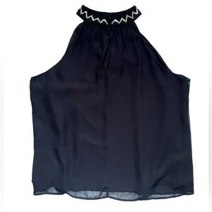 NWT Eva Mendes Beaded High Neck Sleeveless Blouse