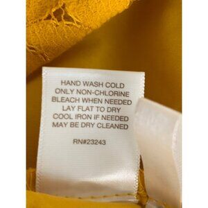 This NWT Eva Mendes NY & Co Mustard Lace Overlay Midi Sleeveless Dress features a stunning ruffle hem. Ideal for enhancing any woman's wardrobe with its elegant design and vibrant color. 6828