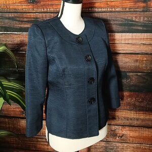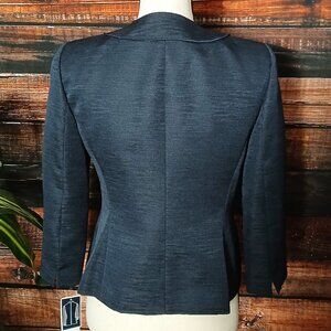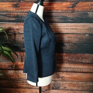 NWT Evan Picone Blazer Jacket 2 Petite Bradford Navy Blue Cropped 3/4 Sleeves