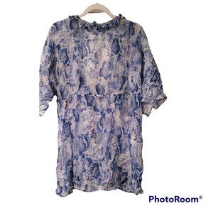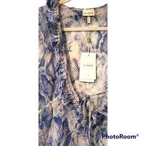 NWT Evarae Short Kaftan 100% Silk Blue Snake Fringe Size Large