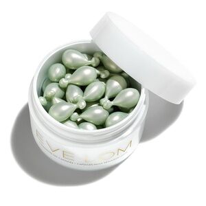 Eve Lom Cleansing Oil Capsules in a sleek white and gold package. Perfect for skincare enthusiasts.