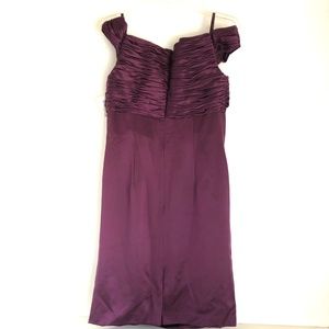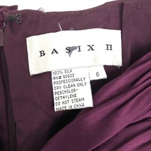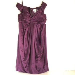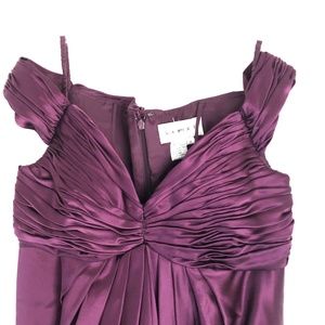 This is a Basix II Women's size 6 Purple Evening Dress. This features Off Shoulder, spaghetti straps, V Neck, Pleated Bust, back zipper, inside bra strap, new tags from Neiman Marcus. This is a new with tags item, with no flaws as shown in picture, please see photos for details.
