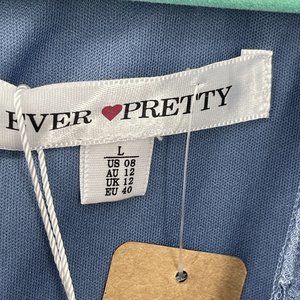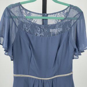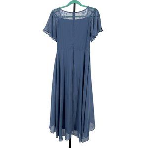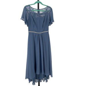NWT Ever Pretty Hi Lo Chiffon Midi Dress sz L Illusion Lace Top Rhinestone Blue