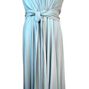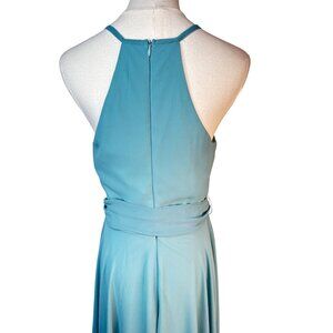 halter dress, maxi dress, Ever Pretty, light blue dress, women's dress, evening wear, polyester dress, summer dress, elegant dress, formal dress, size L, knot waist, halter dress, sleeveless gown, light blue, sky blue, aqua, solid color, chiffon, airy fabric, flowy, draped, belted waist, A-line silhouette, relaxed fit, elegant, chic, timeless, romantic, evening wear, cocktail party, wedding guest, bridesmaid, summer fashion, spring style, stylish, trendy, sophisticated, graceful, feminine
