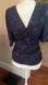 Chic blouse with a navy and black floral design. Features a flattering twist front. Flutter sleeves.
