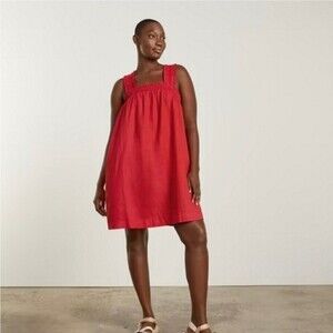 NWT Everlane 100% Linen The Smocked Mini Dress in Goji Berry Red SZ Small