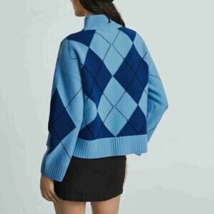 NWT Everlane Blue Navy Argyle Mock Turtleneck Wool Pullover Sweater Size L